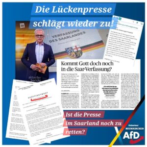 đŸ”„Die Berichterstattung der SaarbrĂŒcker Zeitung war auch nicht besser, hier wurde zumindest berichtet, dass die AfD Kritik an dem Verfassungsentwurf Ă€ußere. Im Kommentar stand unfassbarer Weise auch nur „Die CDU hĂ€tte in der neuen PrĂ€ambel,…, gerne Gott drin, die SPD – Mehrheit nicht“.